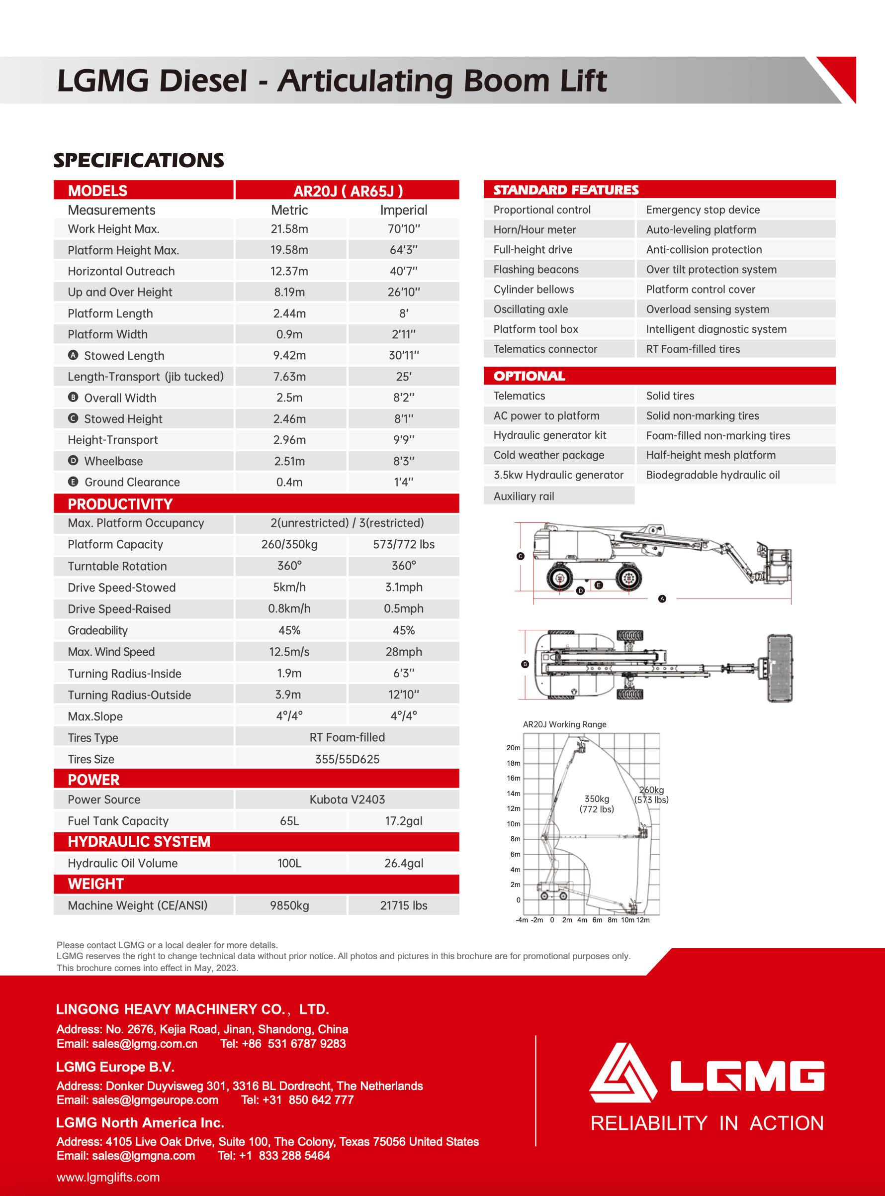 - Working Height: 70ft (22m)