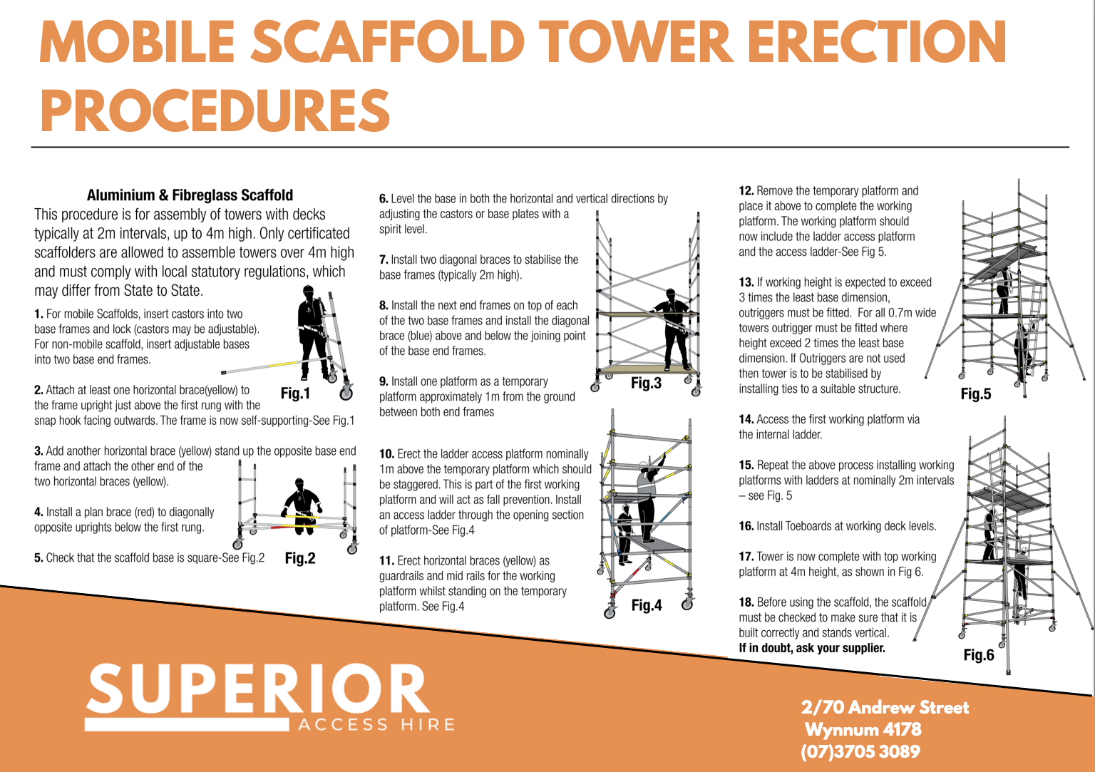 Professional Aluminium Mobile Scaffolding Tower with Guardrail - adjustable legs with big 8 inch heavy duty casters and platforms with trap doors for easy access. These scaffold towers are suitable for both internal and external use and are made from lightweight aluminium. The modular components make it easy to transport on the back of a ute, trailer or truck. Once erected, the mobile scaffolding can be safely moved via the heavy duty lockable caster wheels.
