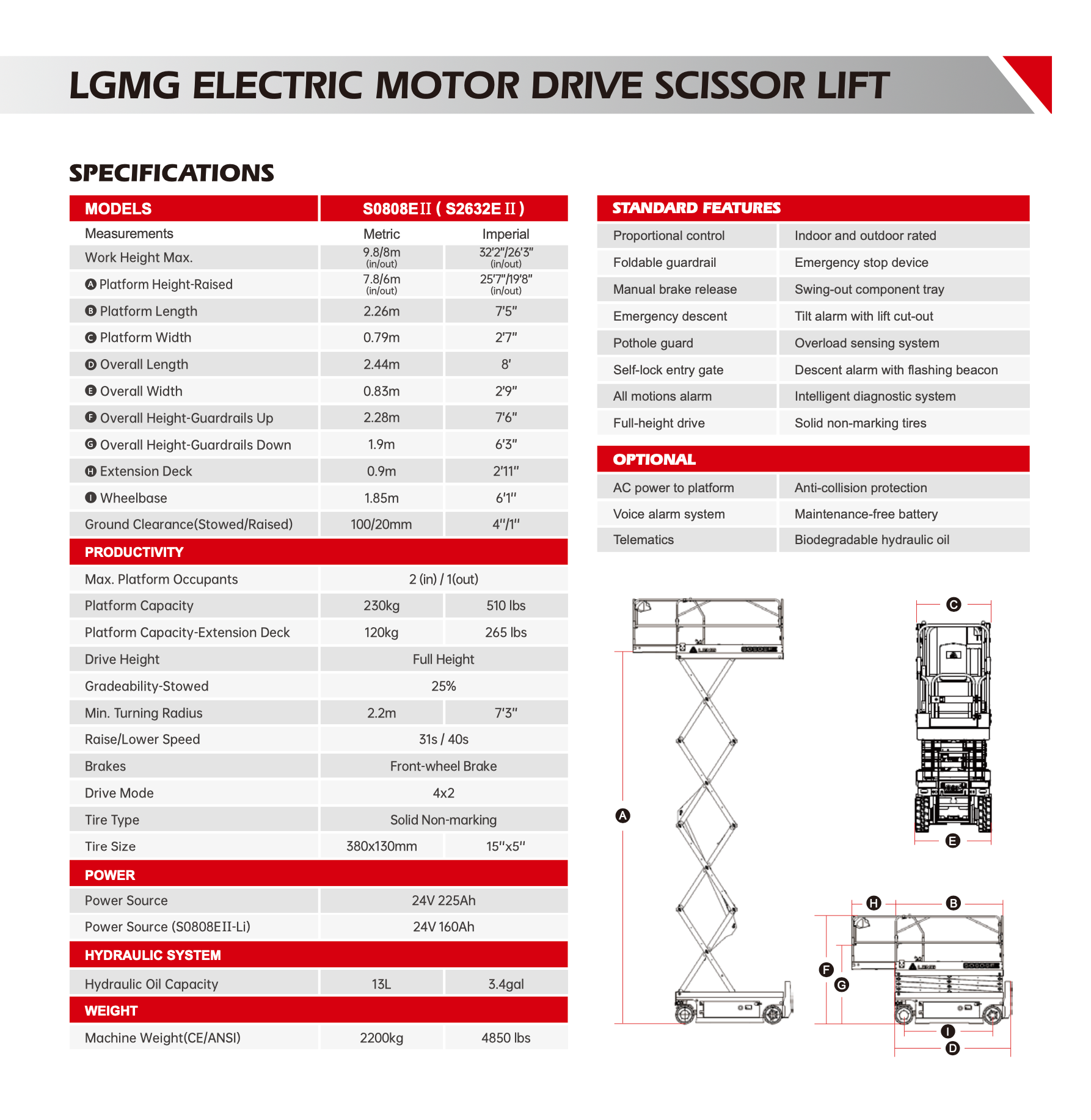With no licence required, this electric scissor lift provides a safe and stable elevated platform for projects up to 10 metres above ground level. Featuring a 7.8 m platform height, it allows operators to comfortably reach ceilings, lighting, and overhead installations.